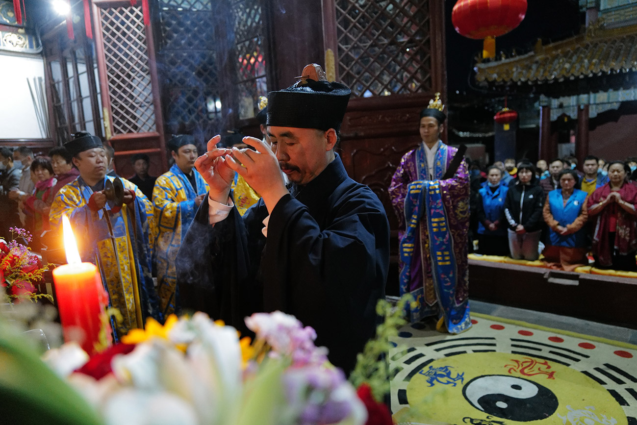 2021年2月5日深夜,农历腊月二十五子时,泰山碧霞祠谨按道教传统举行迎接玉皇圣驾仪式。由于正值暂停开放时期,道场仪式不对信众开放,住持张诚达道长率全庙道众如法依科诵经,为国家和十方信众