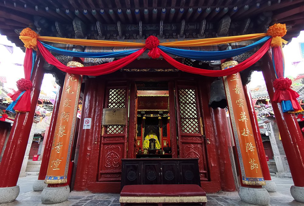 香亭,在正殿前院中。明万历四十一年(1613年),皇帝命于此处铸建铜亭,名曰“天仙金阙”。后金阙辗转移至山下,现存于岱庙。清同治年间于原处建此香亭。