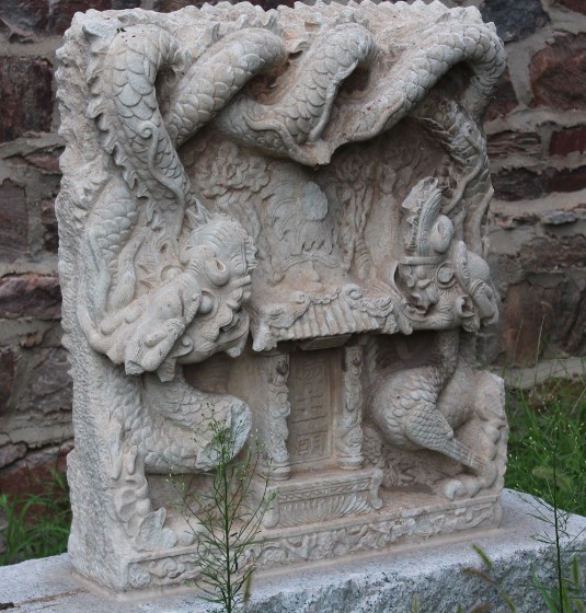 “重修神清宫碑记”碑局部。刻制于元大朝戊午年(1258),记载了王重阳祖师率众弟子上昆嵛山、辟烟霞洞、创全真教的经过和神清宫的兴建始末,极具文物价值,是研究全真教创教初期活动的极为珍贵的历史资料