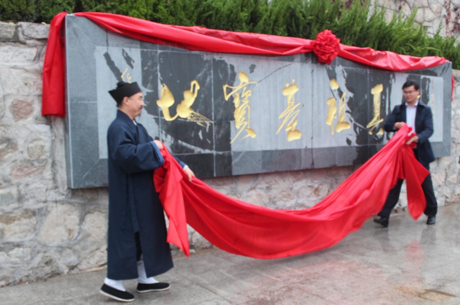 中国道教协会咨议委员会主席任法融道长为昆嵛山题字“全真祖基宝地”,现场举行了赠送仪式。