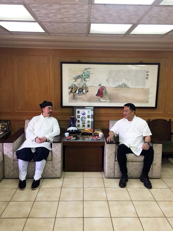 4月10日,交流团一行在台北考察拜会了台湾“中华道教总会”,理事长张柽和秘书长张肇珩热情接待了交流团一行。