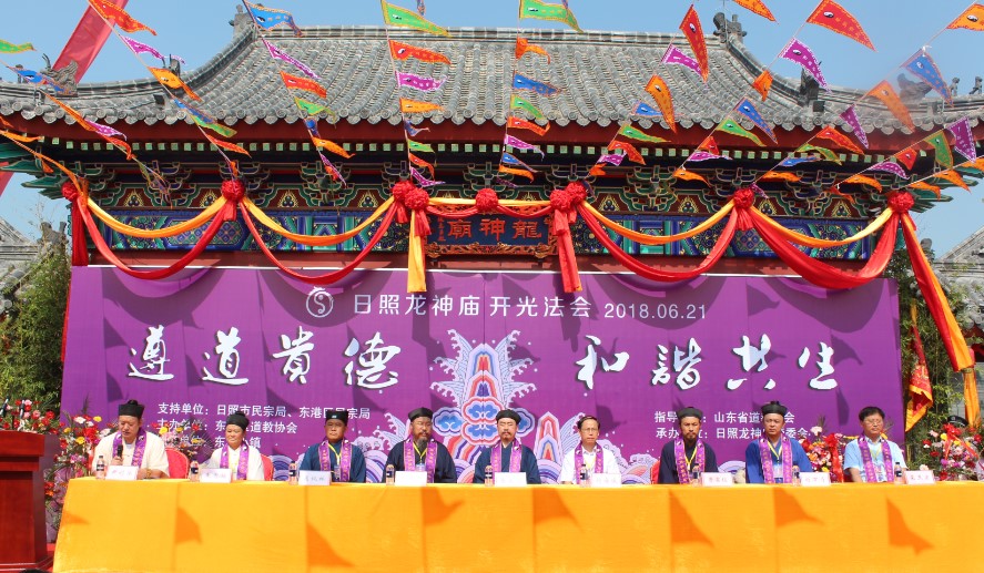 欣逢盛世太平,国运昌隆,2018年6月21日(农历五月初八),上清灵宝天尊圣诞吉日,日照龙神庙开光法会在山东省日照市东夷小镇隆重举行。泰山碧霞祠道教经乐团主持开光法事。开光期间,省内外高道大德、社会各界信众数百余人齐聚龙神庙,一起参加开光活动,见证盛事、共沐神恩。