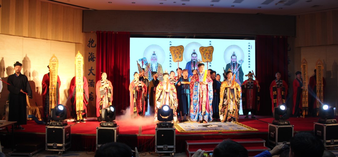 20181013日上午,第九届海峡两岸(威海)道教文化研讨会在山东威海隆重召开。威海市委市政府相关领导到会出席了开幕式,中国道教协会副会长、山东省道教协会会长张诚达道长,山东省道教协会常务副会长、崂山太清宫方丈李宗贤道长,副会长周枫林道长、侯信阳道长、刘万弓道长、孙宇德道长,台湾全真道教会理事长巫平仁道长和台湾省道教会理事长张荣珍率领的台湾道教参访团,以及受邀道教专家学者、山东和台湾两地道教界人士等百余人参加了研讨会。