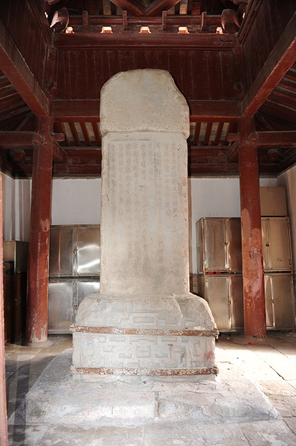 西御碑高165厘米,宽85厘米,为乾隆丁丑年(公元l757年)御题,是其南巡回京路过泰安驻跸灵岩时所作,两诗均依康熙皇帝玄烨登泰山时所作诗的韵脚而作。诗文共9行,满行16字,字径6×5厘米,行书体。其诗为: