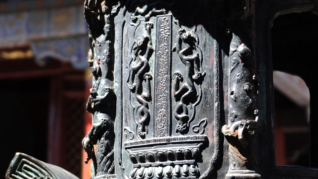 文革期间亦惨破坏,圆形盖檐以及炉身四周上的雕龙全被敲掉,极大影响了其精美程度。