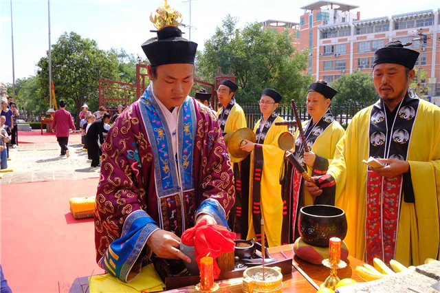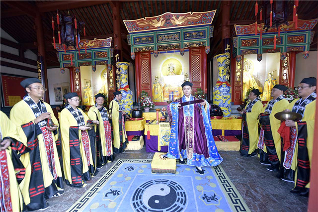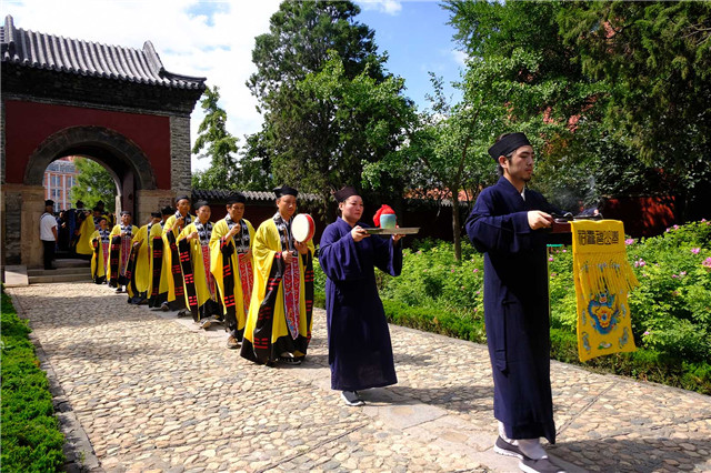 上午九时,道众云集大殿,谨按道教传统仪范,奉行开坛科仪。泰山碧霞祠、泰山灵应宫住持张诚达道长拈香开坛。