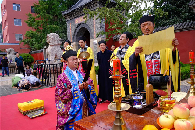 2019814日,农历七月十四,泰山碧霞祠、泰山灵应宫合坛举行的己亥年中元节普度法会在灵应宫道观开坛。