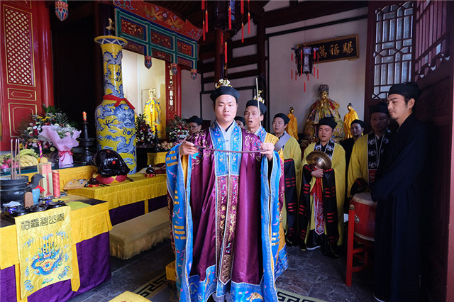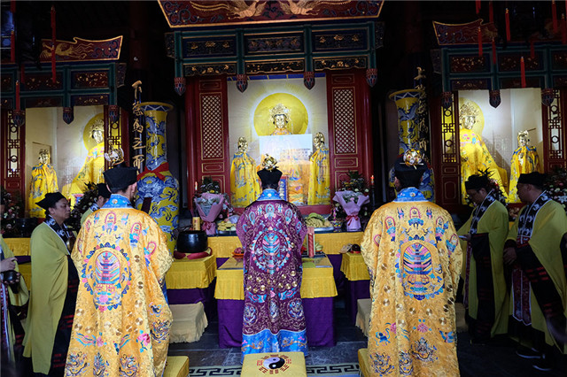 三元午朝科,指在午间朝奉三元时所举行的科仪程式。三元,即“天官、地官、水官”,《太上三官经》云:”天官赐福,地官赦罪,水官解厄”,一切众生皆是天、地、水官统摄。其中,七月十五是地官圣诞之期,也是地官大帝校籍众生罪过之时。