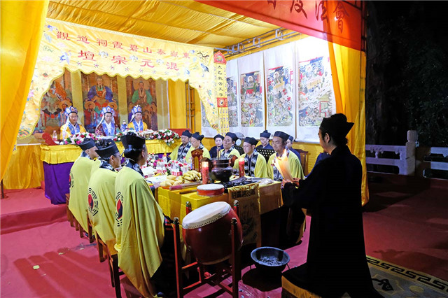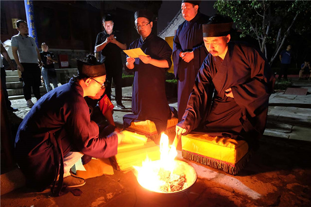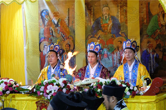 道教的施食科仪来源很早,《道藏》记载甚详,并且流传久远。就现在通行的有《灵宝施食科仪》、《萨祖施食科仪》、《萨祖铁鏆施食科仪》、《沃山焰口》、《关公施食科仪》、《斗姥施食科仪》等等。全真道教一般通用的是《萨祖铁鏆施食科仪》。