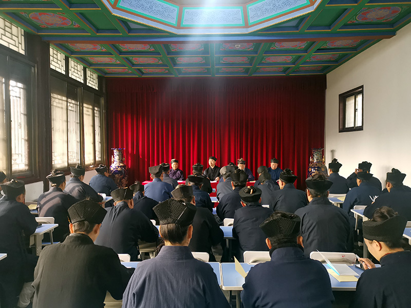 张诚达会长在最后总结讲话中强调,党的十九届四中全会是我们国家在“两个一百年”奋斗目标历史交汇点上召开的一次具有开创性、里程碑意义的重要会议,为我们国家坚定制度自信、实现民族复兴提供了根本遵循、指明了正确方向。当前和今后一个时期,道教界要把学习贯彻十九届四中全会精神当作首要政治任务,深刻领会、准确把握全会的重大意义、精神实质和丰富内涵。全市道众要切实把思想和行动统一到党中央决策部署上来,自觉增强“四个意识”,坚定“四个自信”,做到“两个维护”,以新修订《宗教事务条例》为根本依据,坚决抵制商业化之风,坚持道教中国化方向,规范管理,促进和谐,努力为实现中华民族伟大复兴贡献智慧和力量。