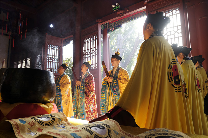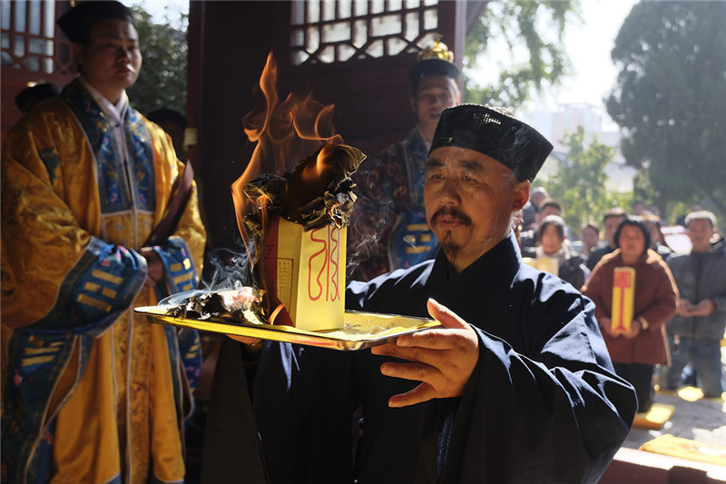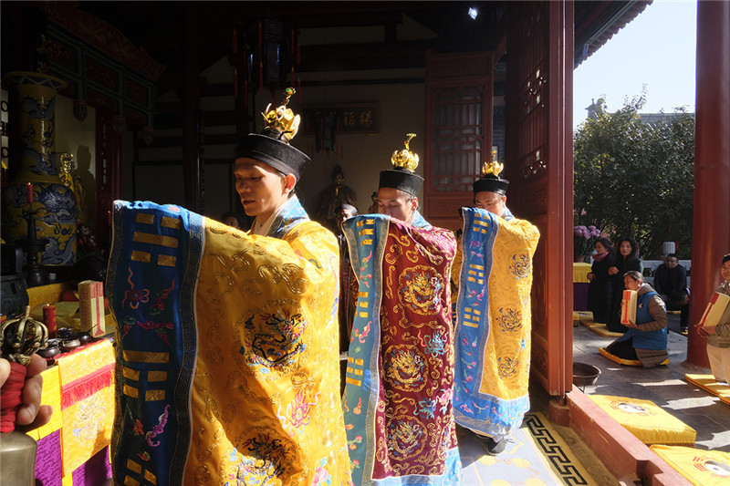 11月11日,恭逢下元五炁解厄水官圣诞吉期,上午十时,泰山道众在灵应宫举行庆贺祈福法会。