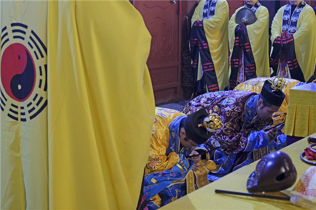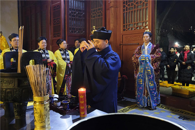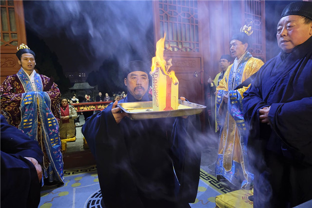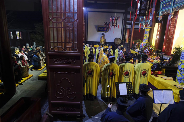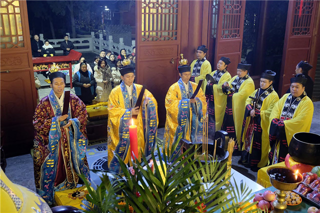 21日晚7时,冬至前夕,泰山道众谨依道教传统如法如仪举行己亥年元始天尊圣诞祝寿法会。