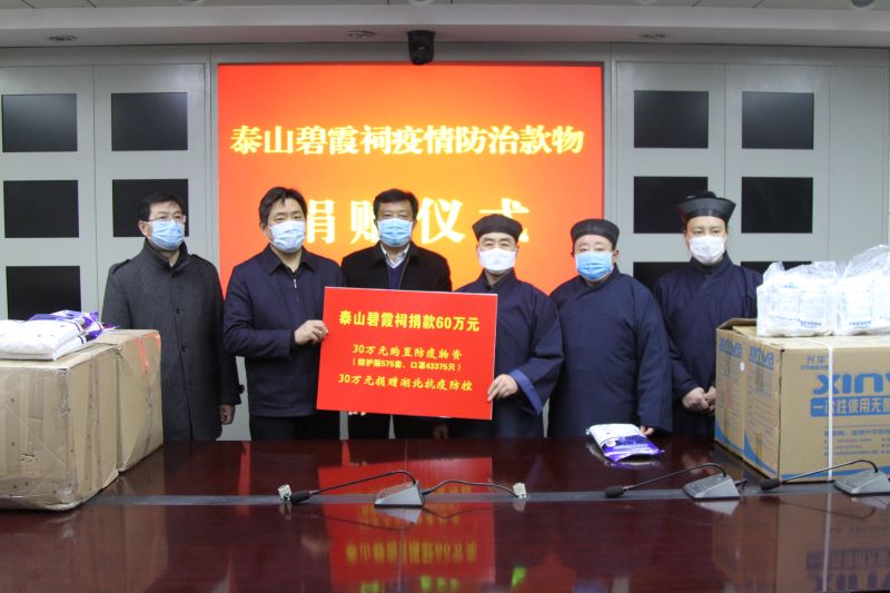 在此前的1月31日,泰山道教界已经通过泰安市慈善总会为疫情防控捐款413200元,至此,泰山道教界为抗击疫情捐款已达1013200元。