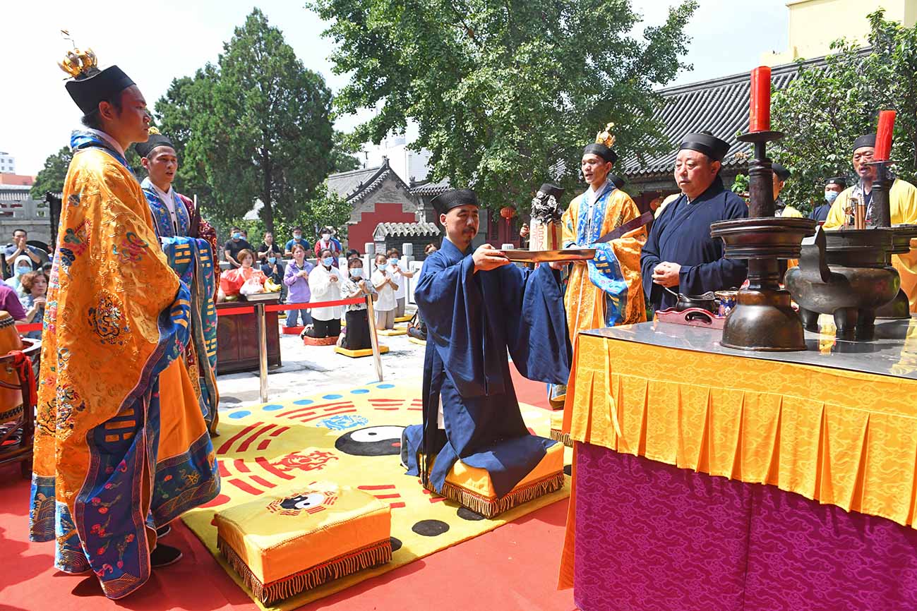 中国道教协会副会长、山东省道教协会会长、泰安市道教协会会长张诚达道长率领两班道众,谨按道教传统拈香诵经,如法如仪,称扬高真宝号,拜进祈福疏文,祈愿上圣高真护佑: