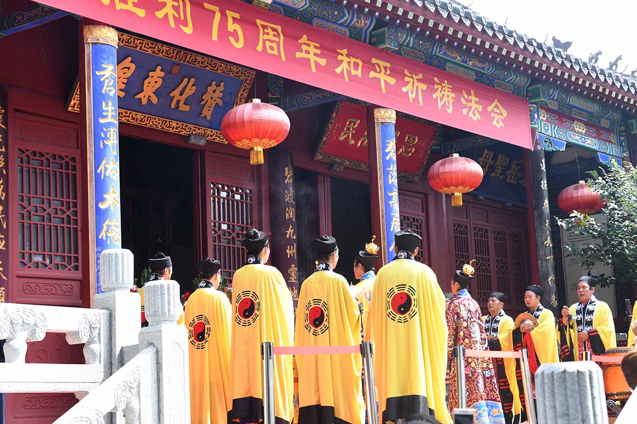 2020年8月4日,适逢农历六月十五吉日,泰山道教界纪念中国人民抗日战争暨世界反法西斯战争胜利75周年和平祈祷法会在泰山灵应宫庄严举行。