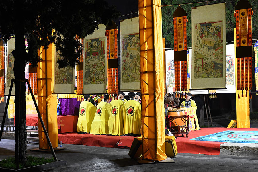 法会于当天二时开始。泰山灵应宫一进院内恭设法坛,住持张诚达道长率碧霞祠、灵应宫道众,谨按道教传统仪范,依次奉行城隍、摄召、安灵、祭孤、救苦诸科,晚六时判放全真青玄济炼铁罐施食,度亡生方,普济孤幽,共祈冥阳两利、国泰民安。