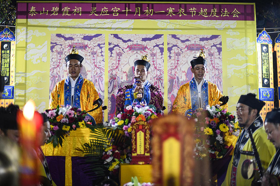 2020年11月15日,庚子年十月初一,是我国传统的寒衣节,泰山道众谨按道教传统在泰山灵应宫举行庚子年寒衣节超度法会。