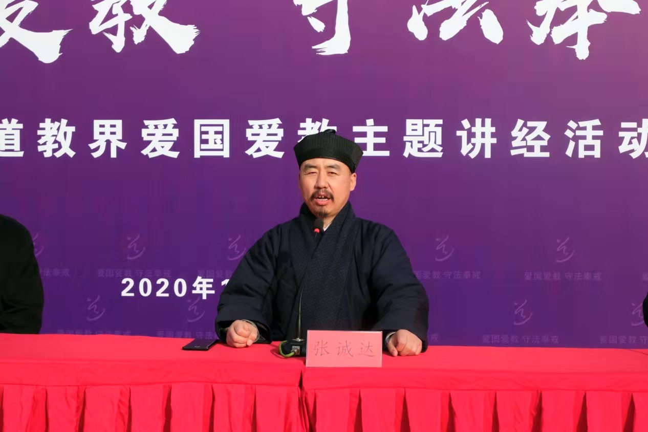 2020年11月24日,泰安市道教协会举行爱国爱教主题讲经活动。市委统战部副部长、一级调研员张庆峰应邀出席,中国道教协会副会长、山东省道教协会会长、泰安市道教协会会长张诚达道长,以及市道协常务理事、讲经道众和部分信众代表50余人参加活动。