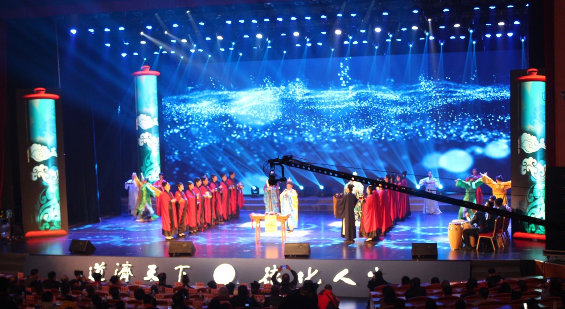 2017年11月15日晚七点,由中华宗教文化交流协会支持、中国道教协会主办、西安市道教协会承办的主题为“道济天下·德化人生”的中国道教协会(西安)第二届道教文化艺术周开幕式在古都西安隆重开幕,来自全球各地高道大德、学者嘉宾六百余人齐聚西安曲江国际会议中心。此次活动是我国道教界规格最高、规模最大、影响最广的国际性文化交流活动,旨在举办一场社会各界共同参与的开放的、多元的、共享的道教传统文化盛会。张诚达道长携山东讲经道众出席开幕式并观看了道教音乐汇演。