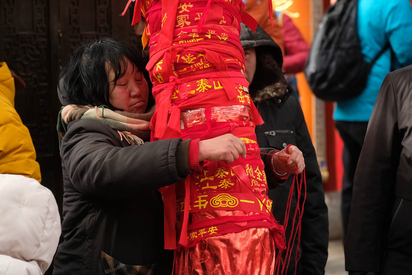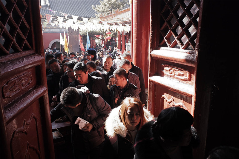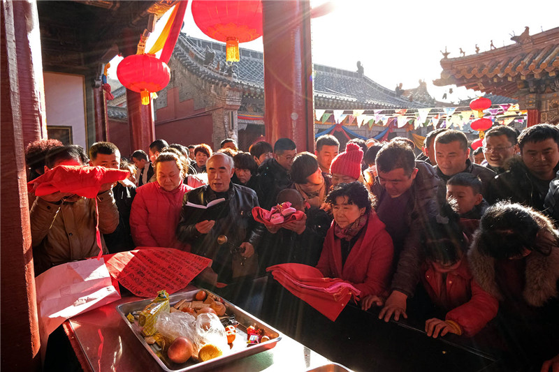 大年初一开始,一年一度的泰山碧霞祠新春祈福庙会如期而至。泰山顶上,人来人往;碧霞祠内,摩肩接踵。成千上万善男信女前来进香礼拜,祈愿一年吉祥平安。许愿还愿、红红火火,充满一派热闹祥和的吉庆气氛。
